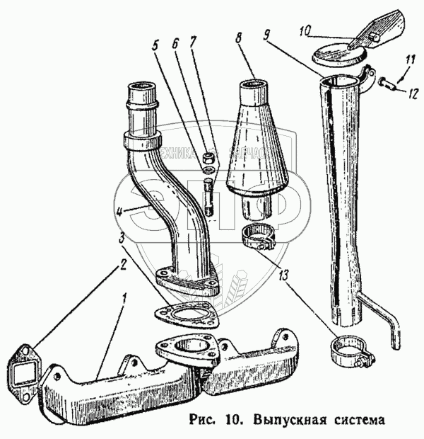 Каталог запасных частей к технике: ВгТЗ ДТ-75М. Выпускная система