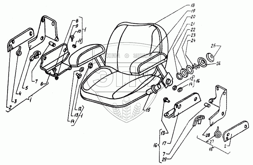 Каталог запасных частей к технике: ВгТЗ ДТ-75МВ. Сиденье водителя