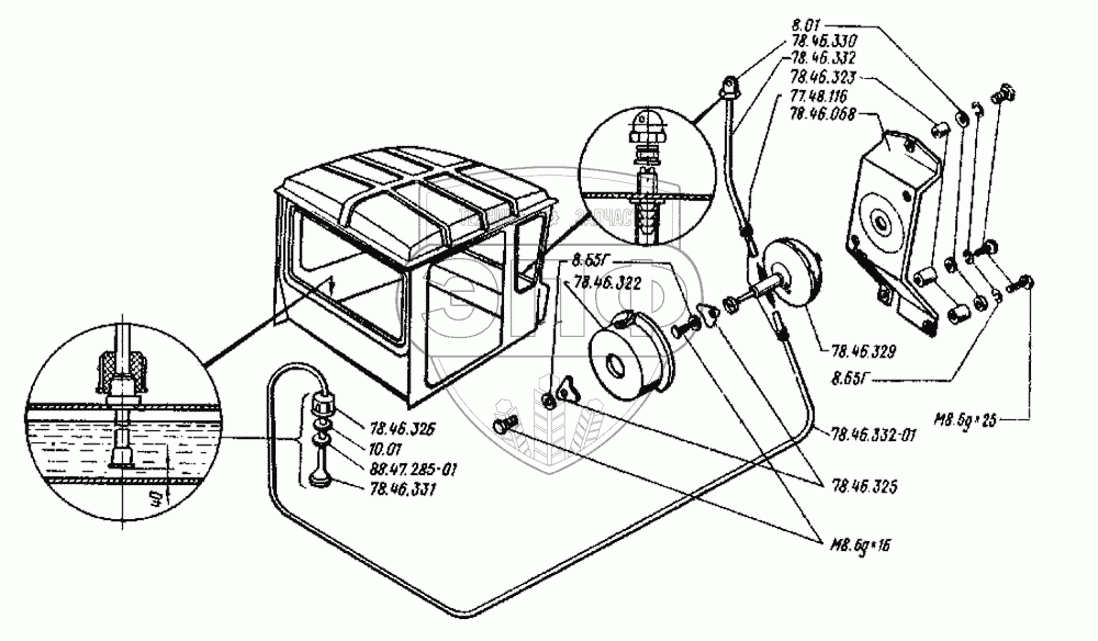Каталог запасных частей к технике: ВгТЗ ДТ-75Н. Оборудование кабины. Омыватель переднего стекла