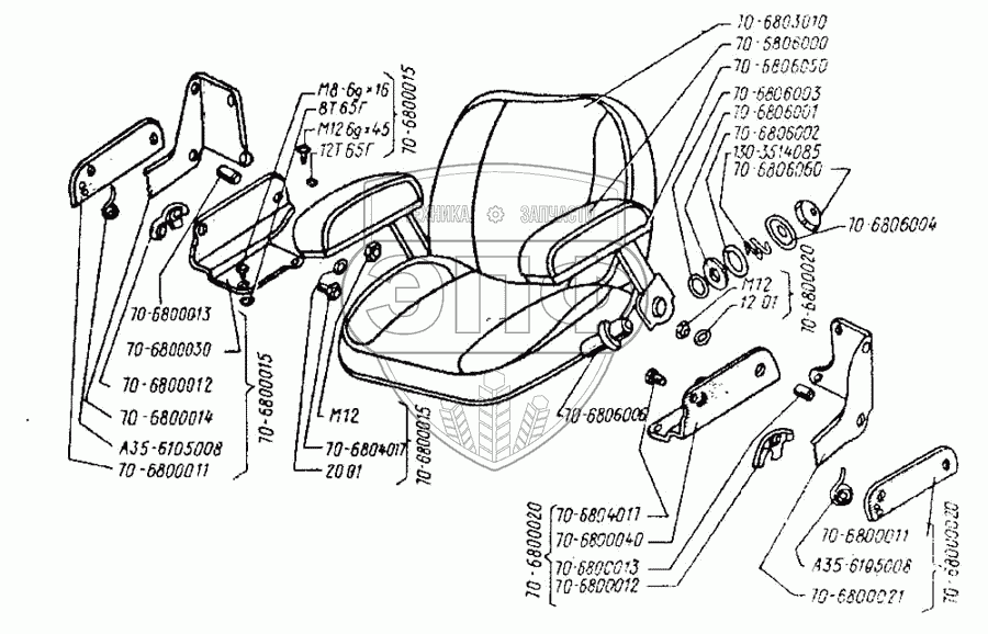 Каталог запасных частей к технике: ВгТЗ ДТ-75Н. Сиденье. Сборка сиденья