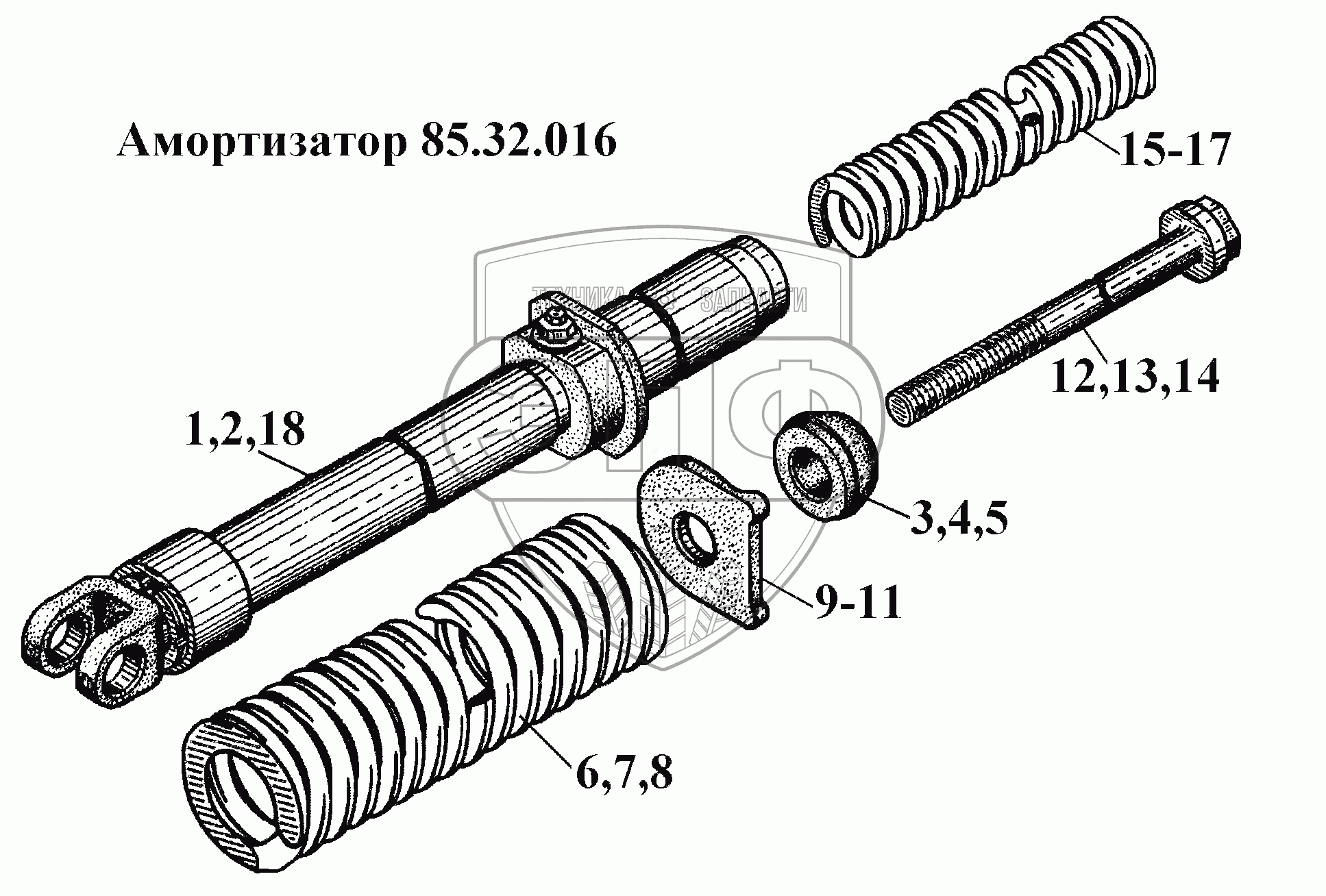 Каталог запасных частей к технике: ВгТЗ ВТ-100Д. Амортизатор 85.32.016