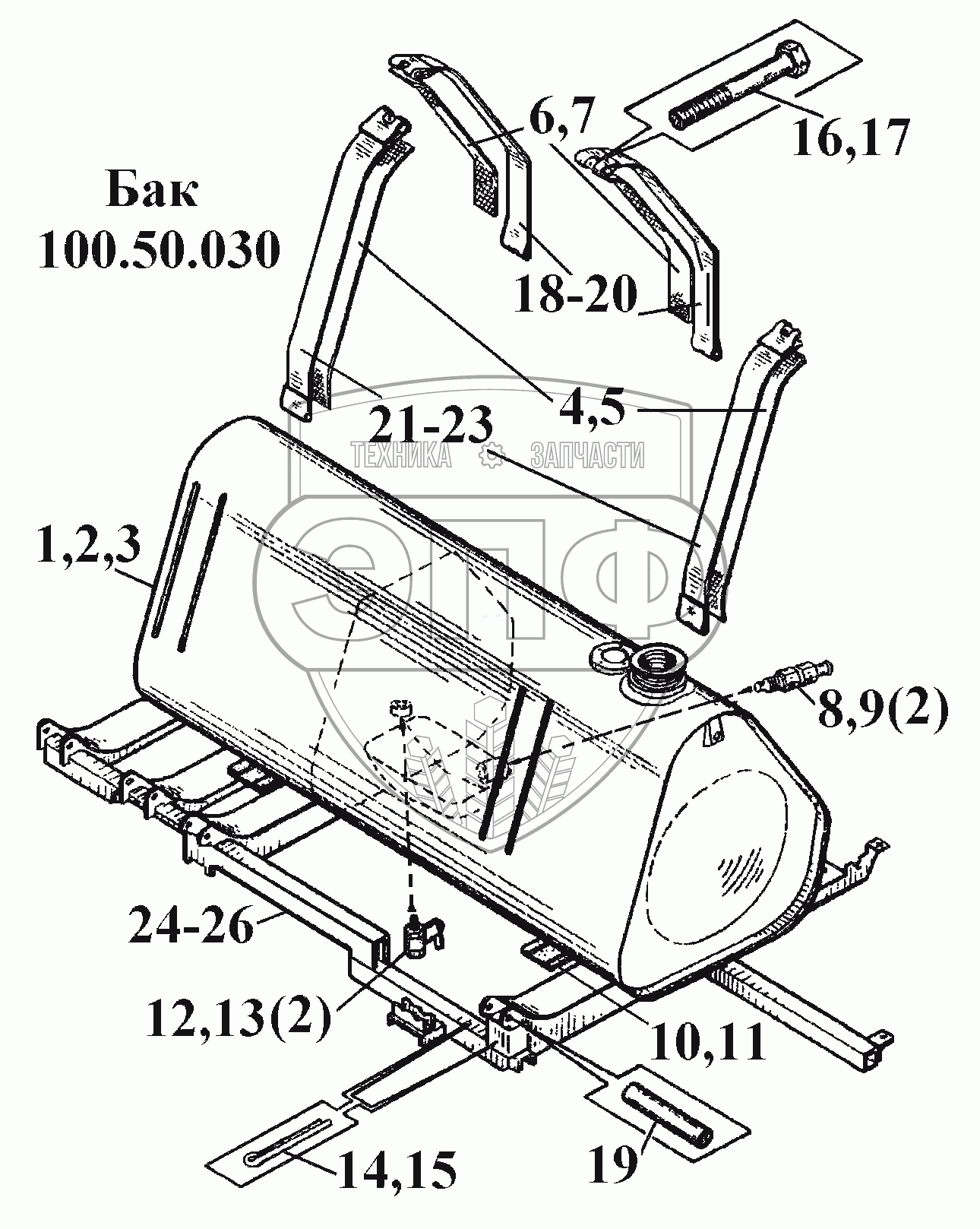 Каталог запасных частей к технике: ВгТЗ ВТ-100Д. Бак 100.50.030