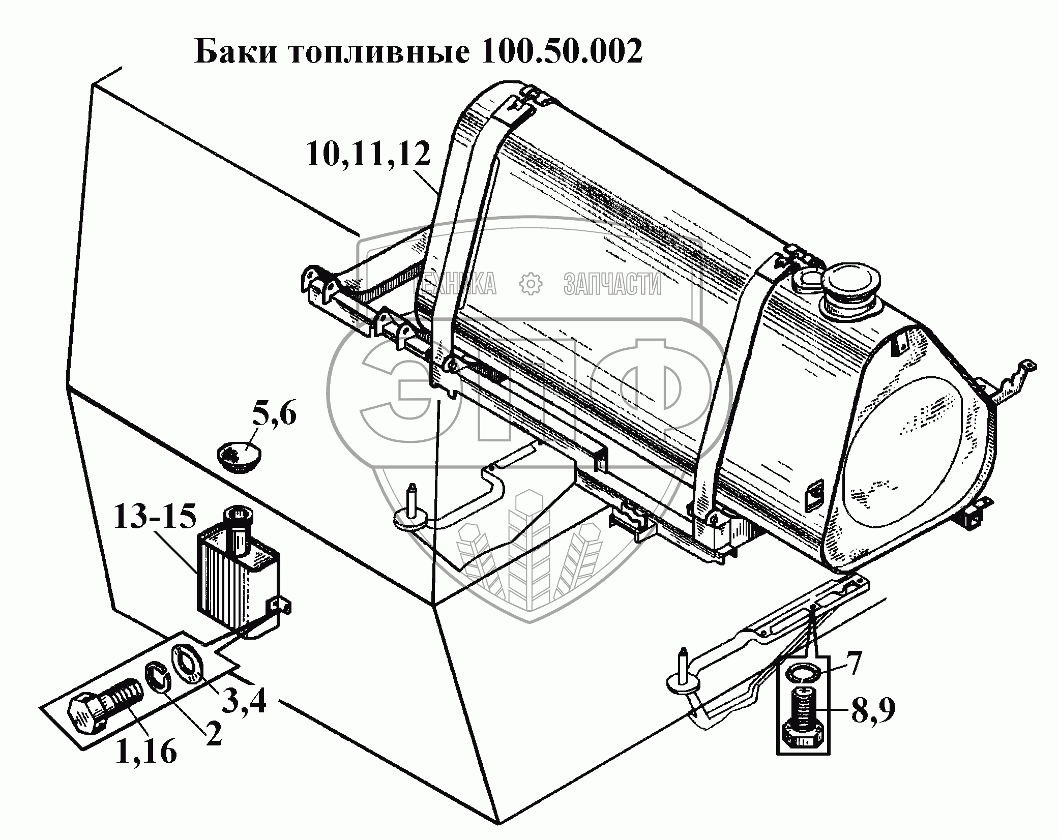 Каталог запасных частей к технике: ВгТЗ ВТ-100Д. Баки топливные 100.50.002