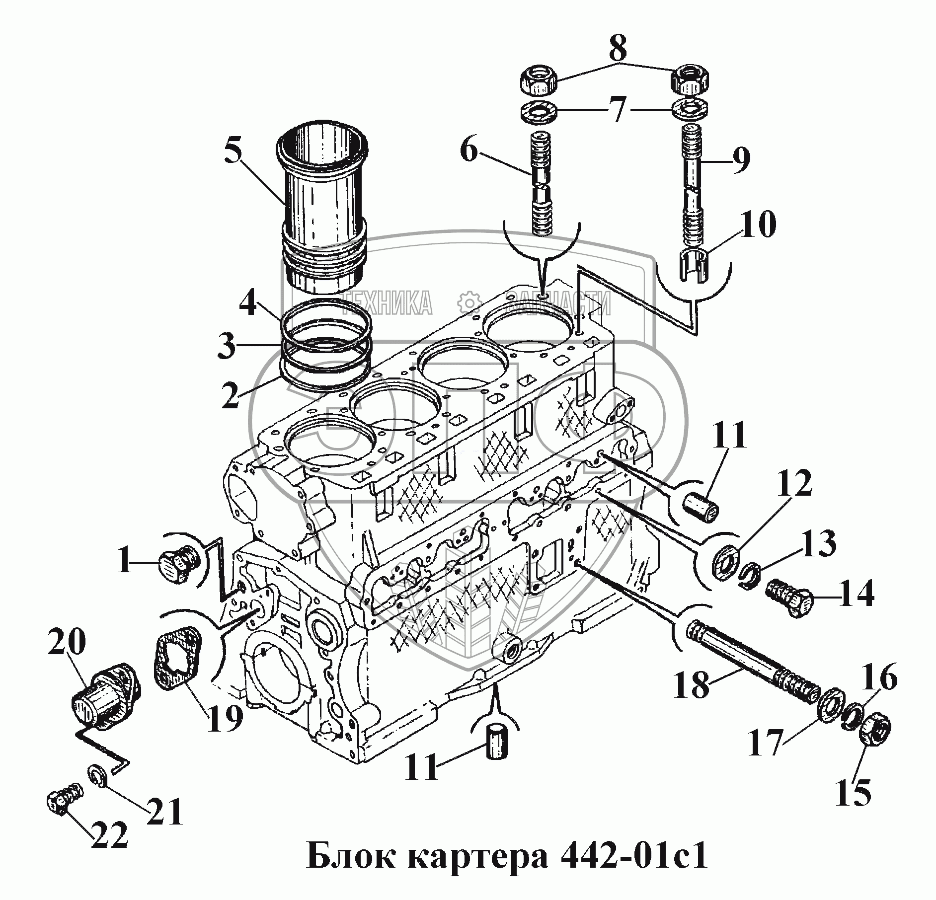 Каталог запасных частей к технике: ВгТЗ ВТ-100Д. Блок картер 442-01с1 (1)