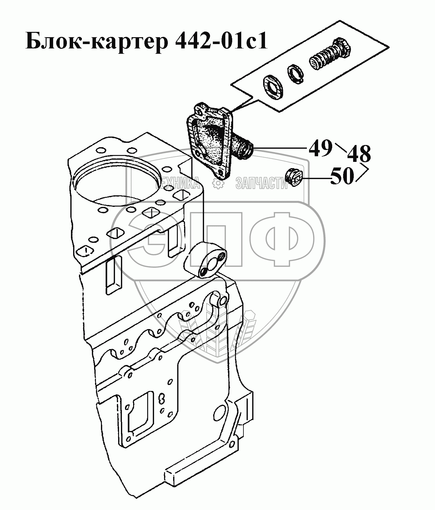 Каталог запасных частей к технике: ВгТЗ ВТ-100Д. Блок картер 442-01с1 (3)