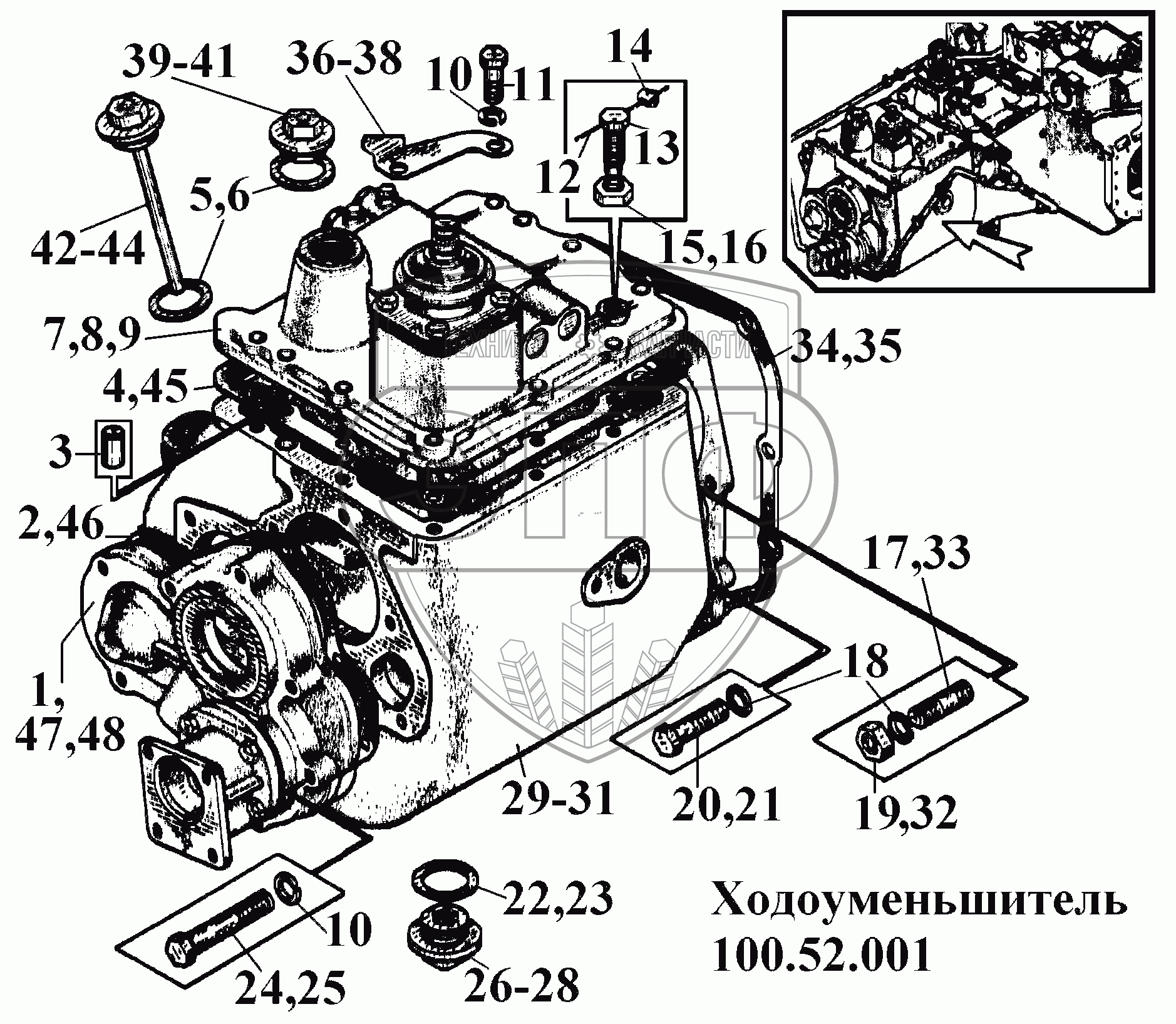 Каталог запасных частей к технике: ВгТЗ ВТ-100Д. Ходоуменьшитель 100.52.001 (1)