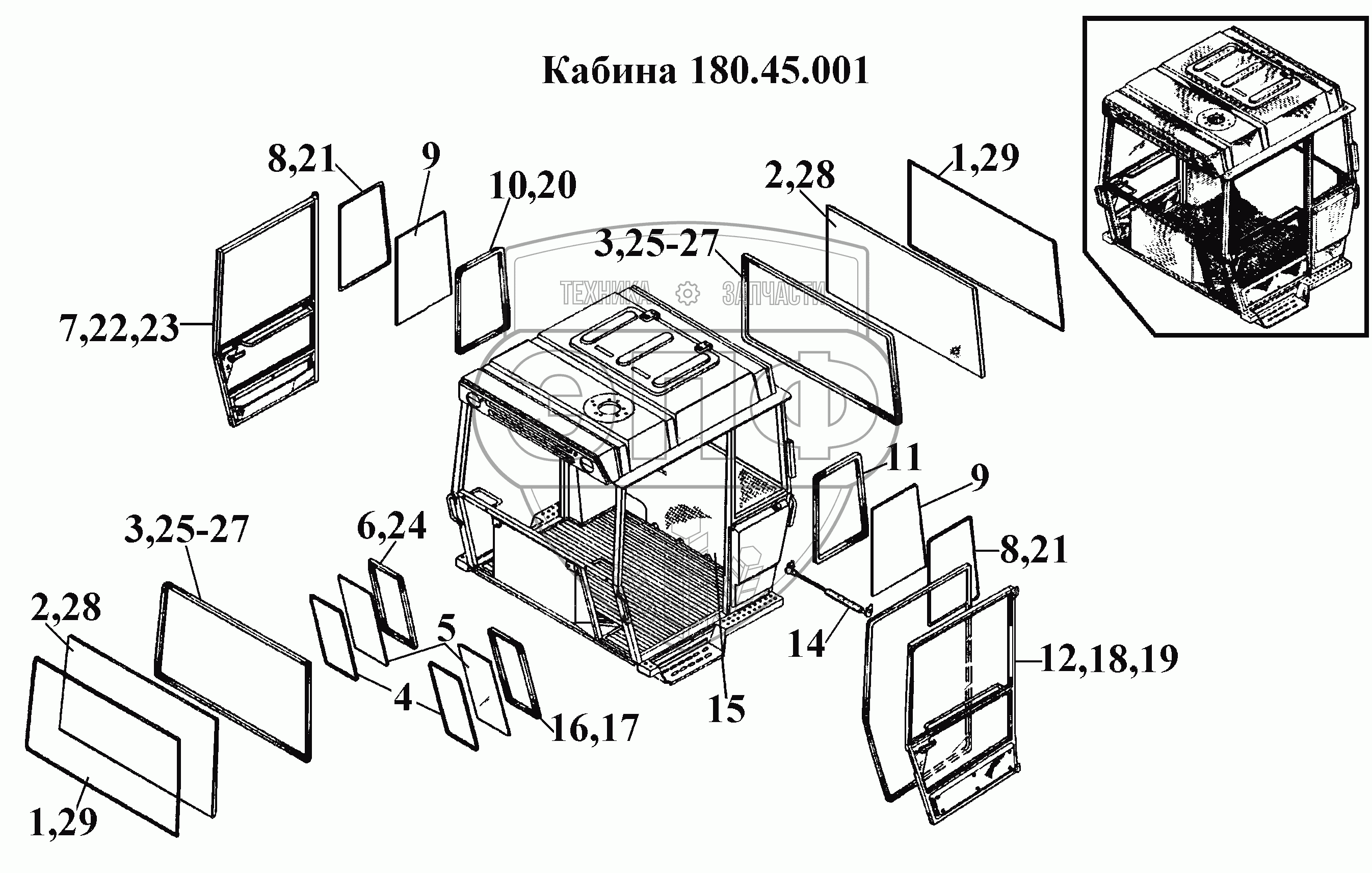 Каталог запасных частей к технике: ВгТЗ ВТ-100Д. Кабина 180.45.001 (1)