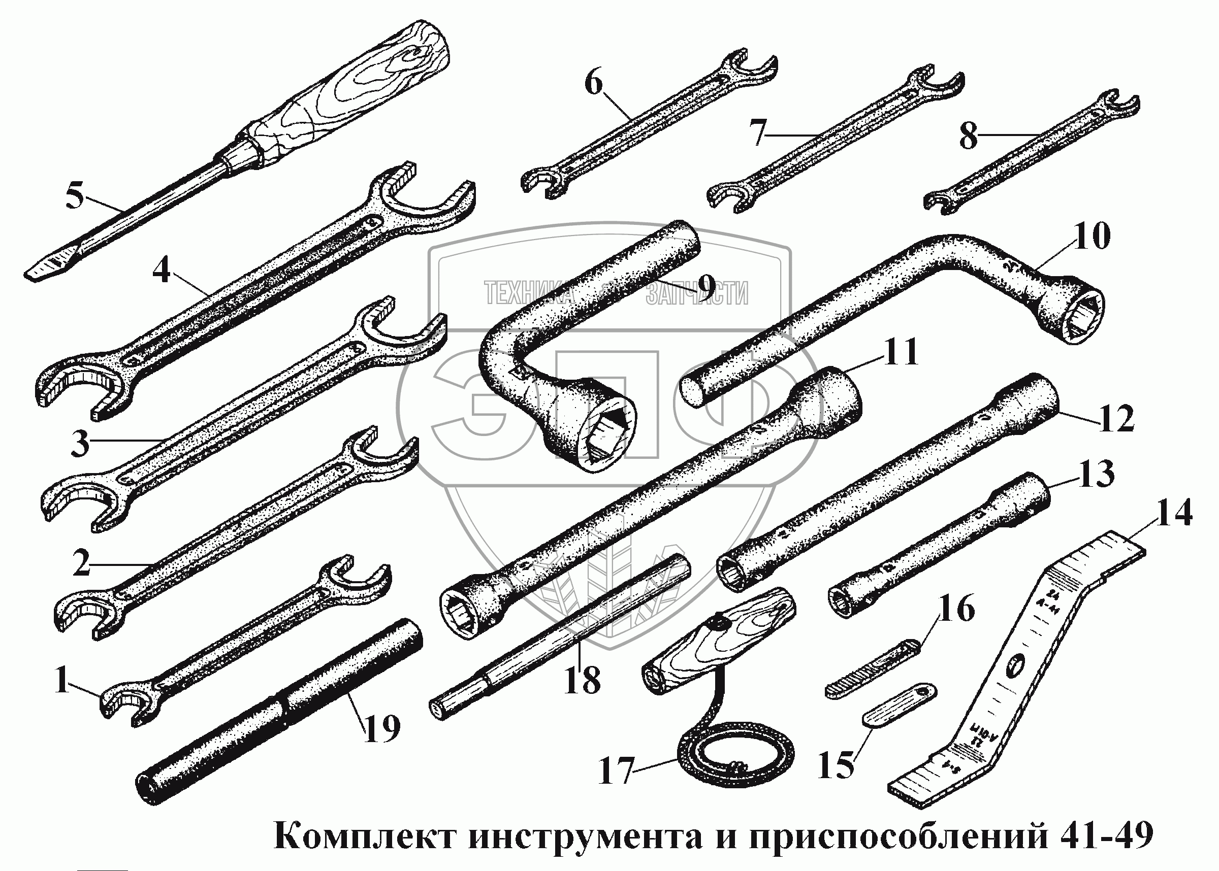 Каталог запасных частей к технике: ВгТЗ ВТ-100Д. Комплект инструмента и приспособлений 41-49