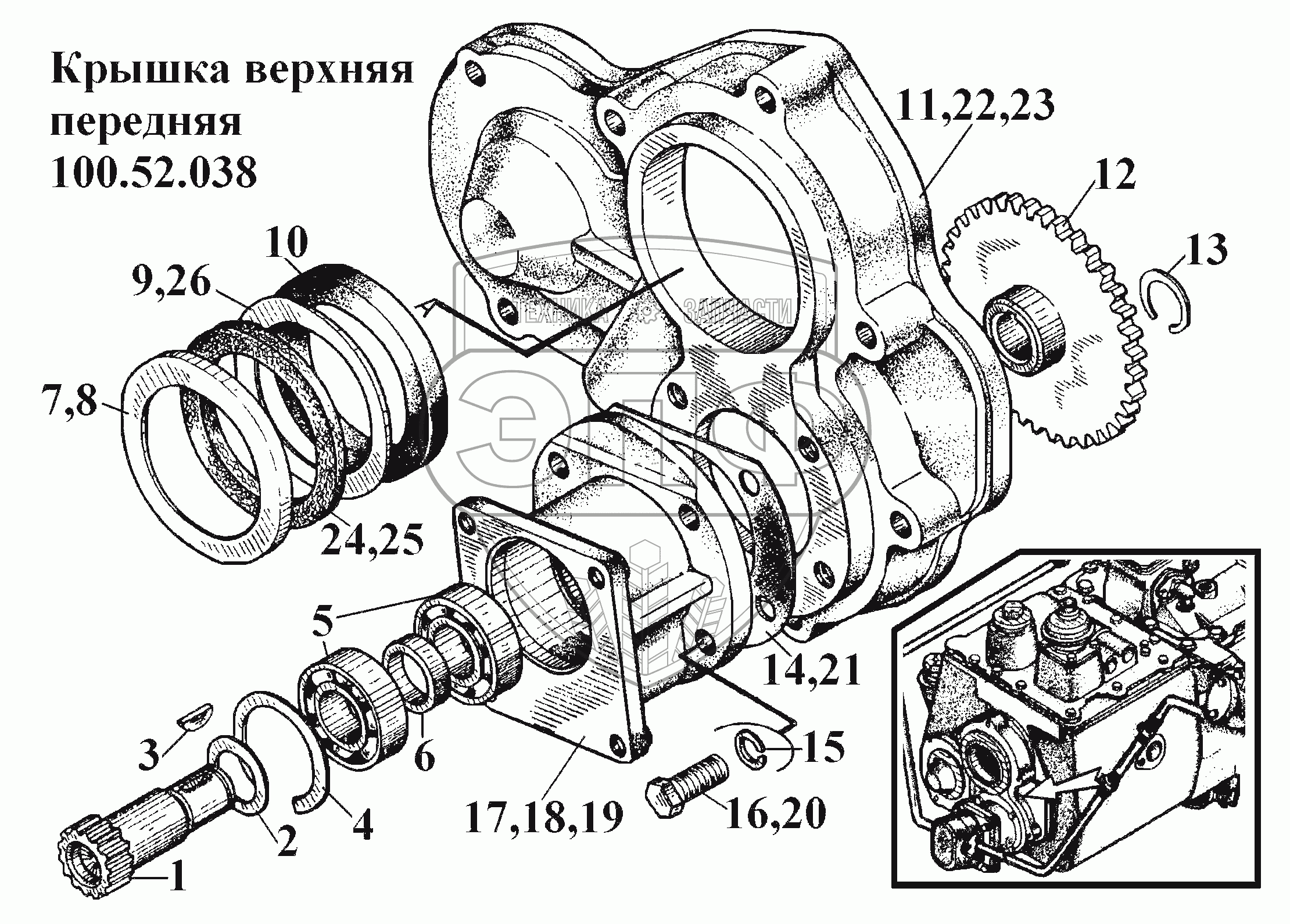 Каталог запасных частей к технике: ВгТЗ ВТ-100Д. Крышка верхняя передняя 100.52.038
