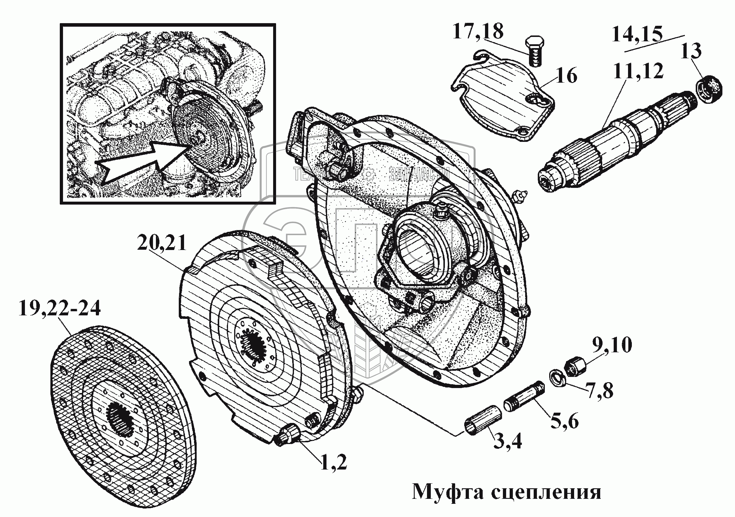 Каталог запасных частей к технике: ВгТЗ ВТ-100Д. Муфта сцепления (2)
