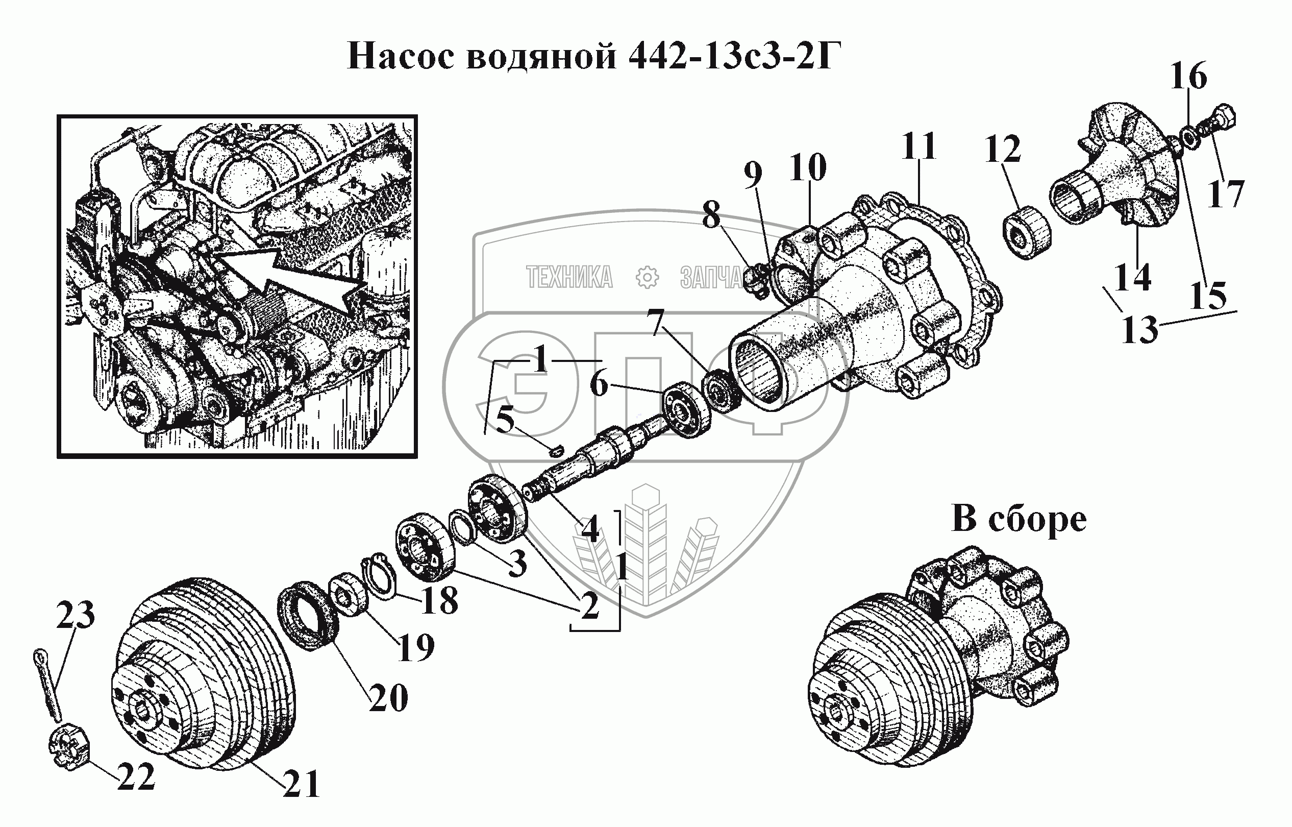 Каталог запасных частей к технике: ВгТЗ ВТ-100Д. Насос водяной 442-13с3-2Г