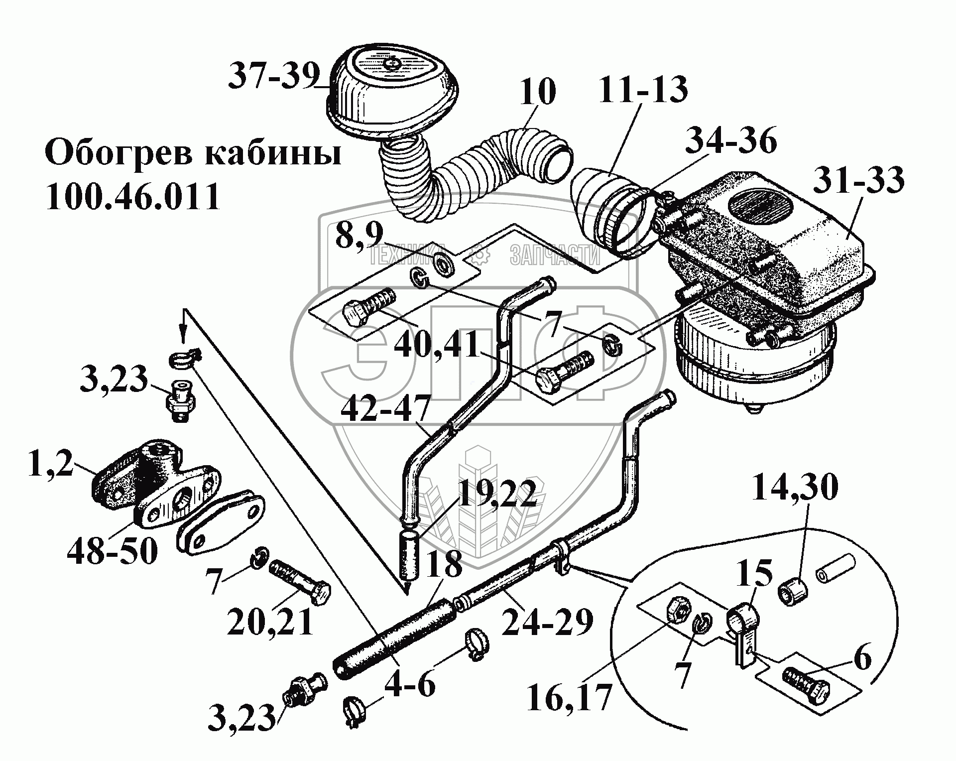 Каталог запасных частей к технике: ВгТЗ ВТ-100Д. Обогрев кабины 100.46.011