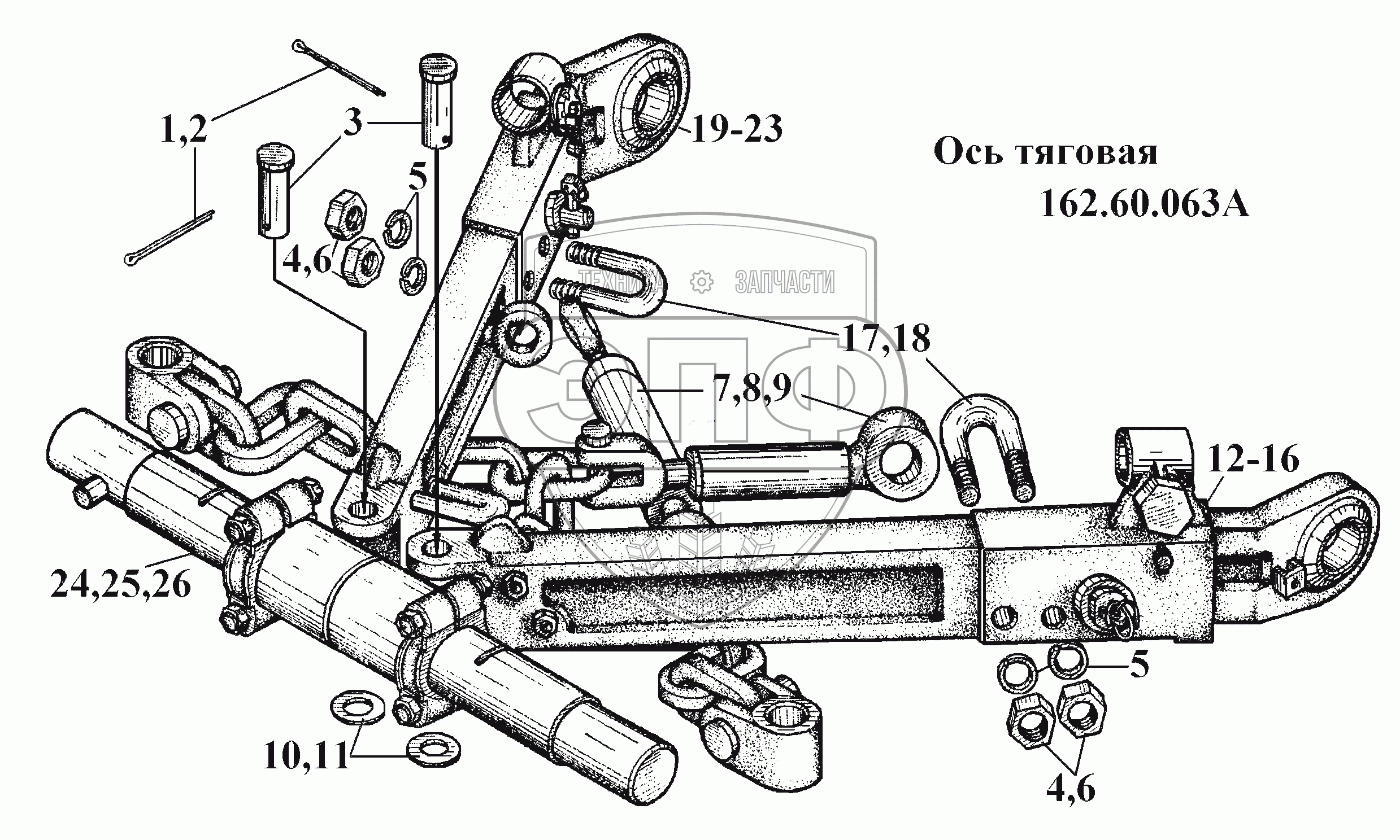 Каталог запасных частей к технике: ВгТЗ ВТ-100Д. Ось тяговая 162.60.063А