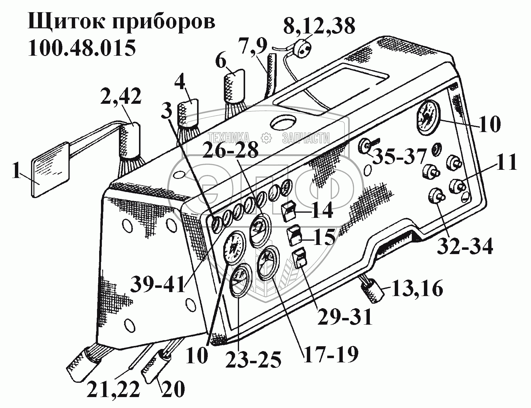 Каталог запасных частей к технике: ВгТЗ ВТ-100Д. Щиток приборов 100.48.015