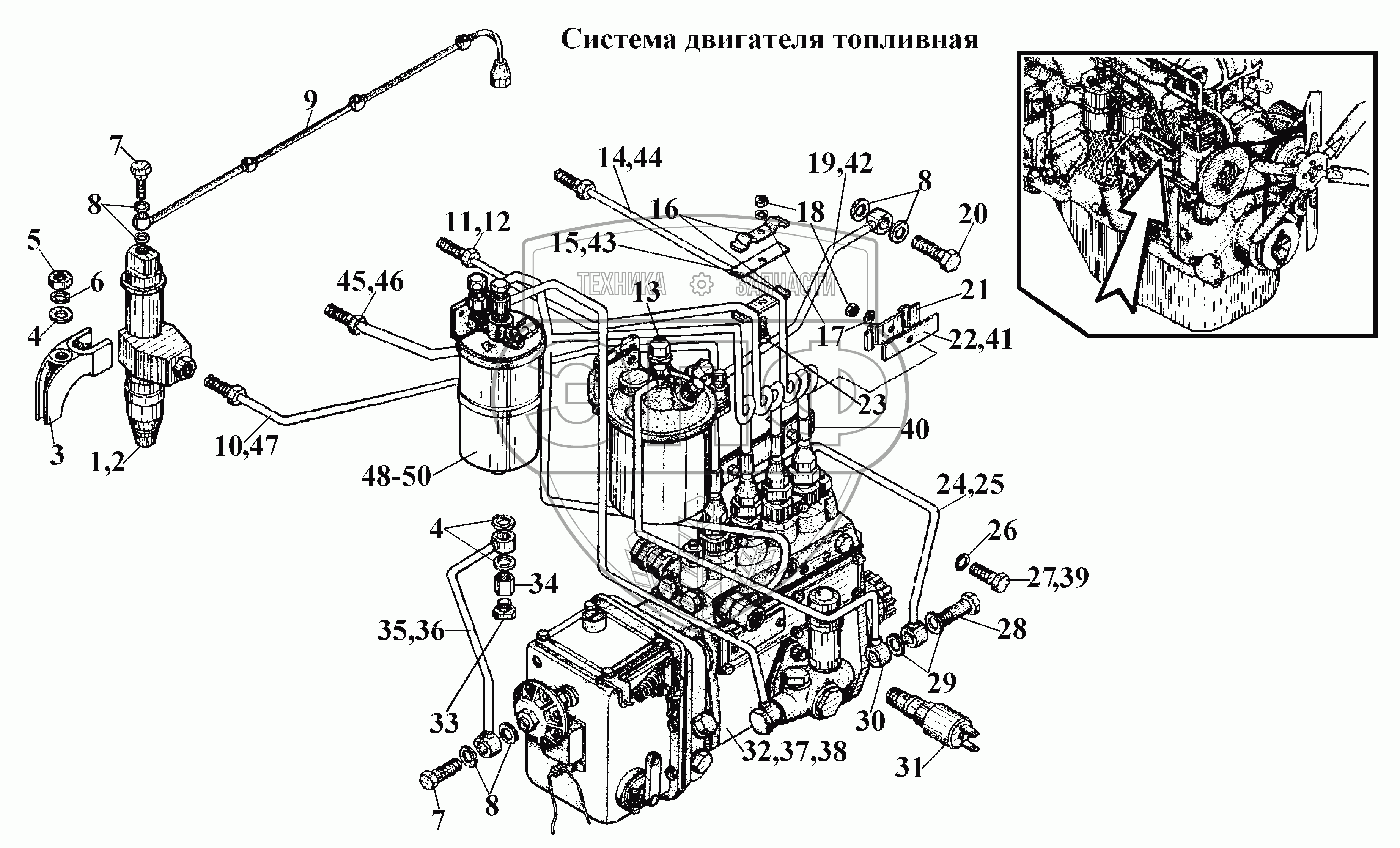Каталог запасных частей к технике: ВгТЗ ВТ-100Д. Система двигателя топливная