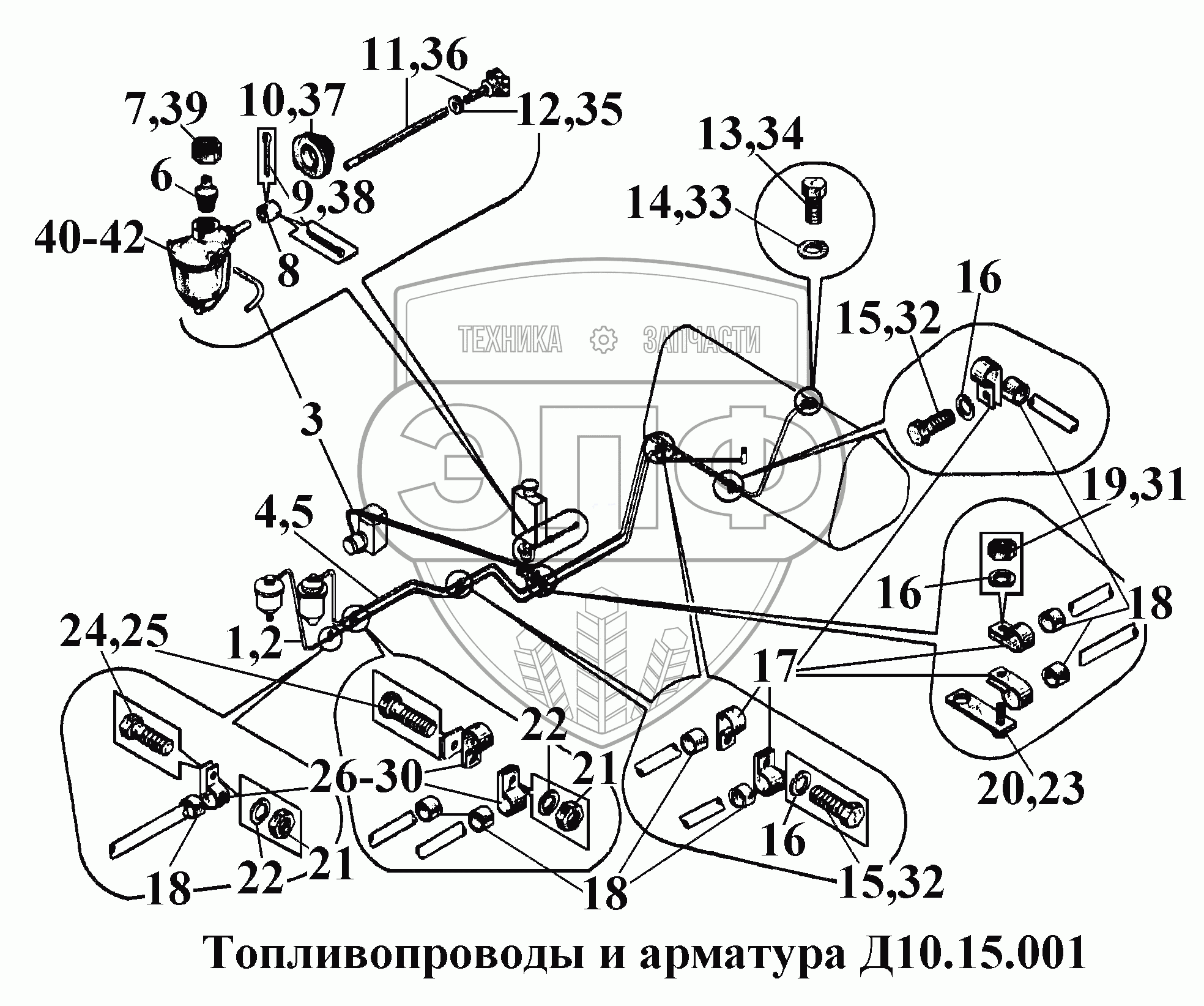 Каталог запасных частей к технике: ВгТЗ ВТ-100Д. Топливопроводы и арматура Д10.15.001