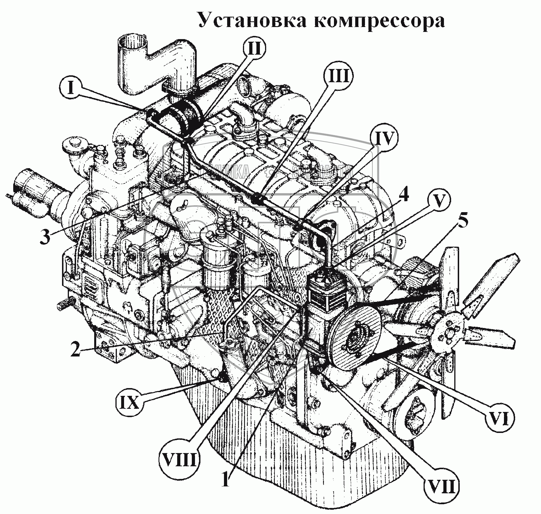 Каталог запасных частей к технике: ВгТЗ ВТ-100Д. Установка компрессора