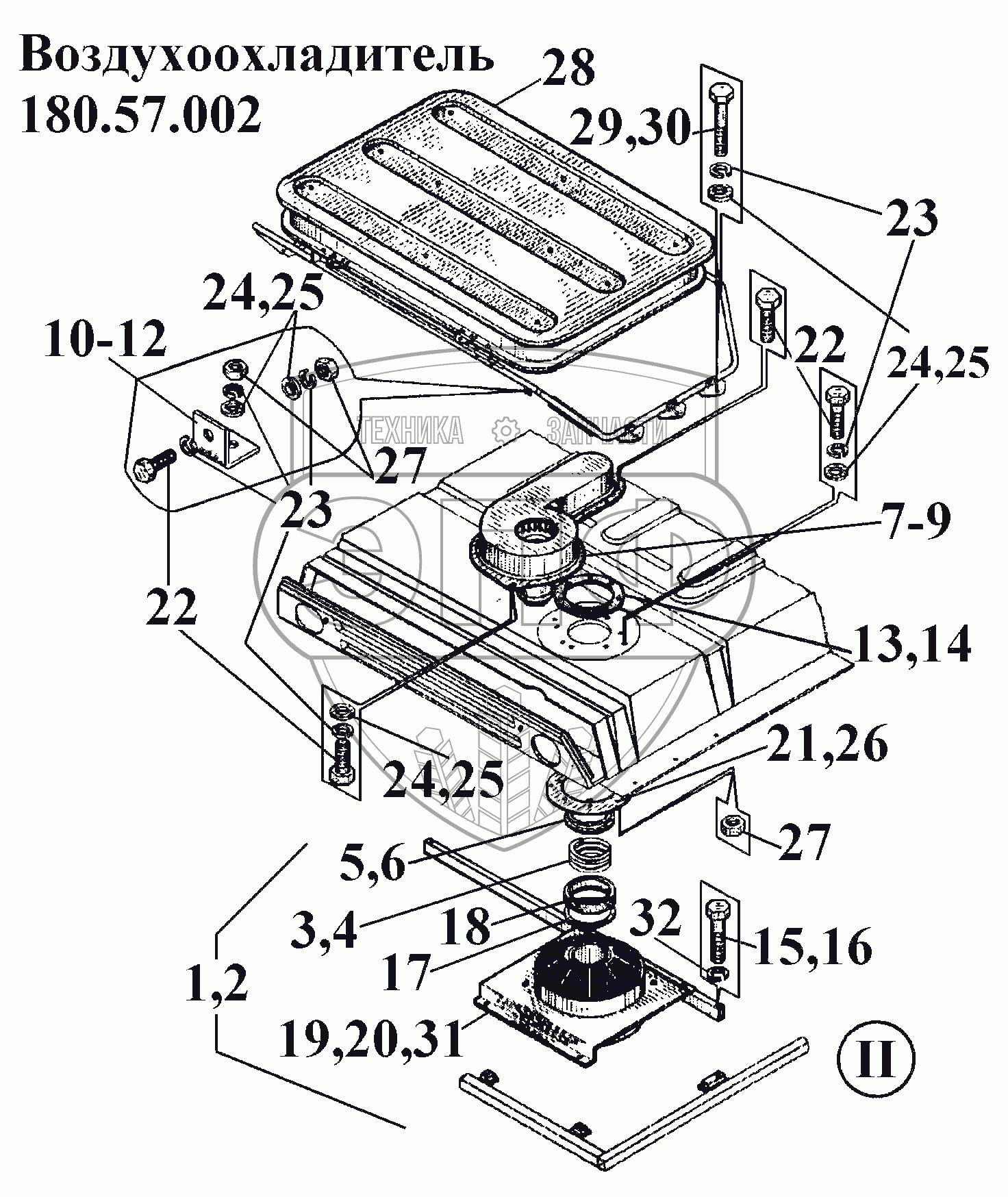 Каталог запасных частей к технике: ВгТЗ ВТ-100Д. Воздухоохладитель 180.57.002 (3)