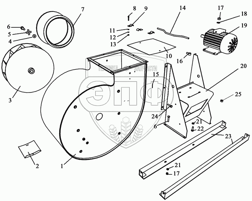 Каталог запасных частей к технике: Воронежсельмаш ЗВС-20А. Вентилятор
