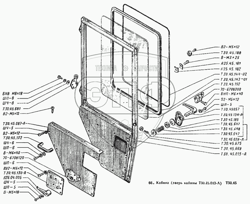 Каталог запасных частей к технике: ВТЗ Т-25А. Дверь кабины Т30.45.013-А