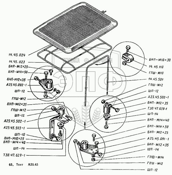 Каталог запасных частей к технике: ВТЗ Т-25А. Тент