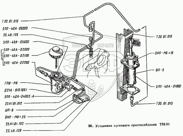 Каталог запасных частей к технике: ВТЗ Т-25А. Установка пускового приспособления
