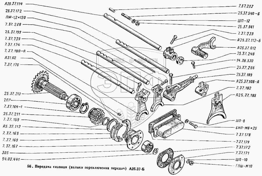 Каталог запасных частей к технике: ВТЗ Т-25А. Валики переключения передач