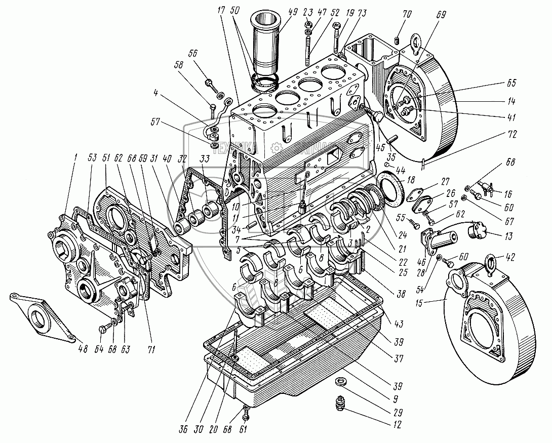 Каталог запасных частей к технике: ЮМЗ-6КЛ, (6КМ). Блок цилиндров