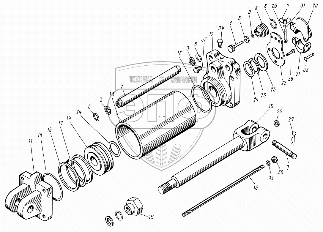 Каталог запасных частей к технике: ЮМЗ-6КЛ, (6КМ). Гидроцилиндр
