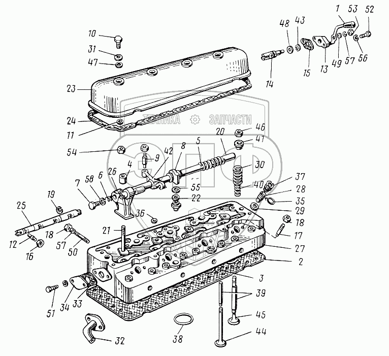 Каталог запасных частей к технике: ЮМЗ-6КЛ, (6КМ). Головка цилиндров