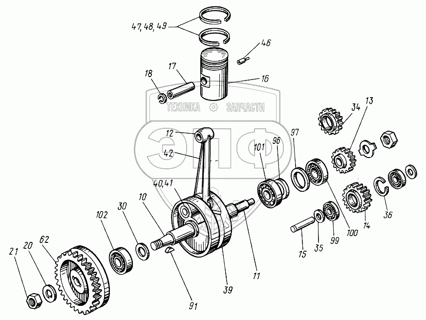 Каталог запасных частей к технике: ЮМЗ-6КЛ, (6КМ). Механизм кривошипно-шатунный