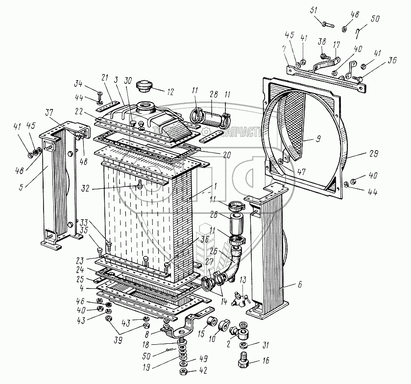 Каталог запасных частей к технике: ЮМЗ-6КЛ, (6КМ). Радиатор водяной. Кожух защитный