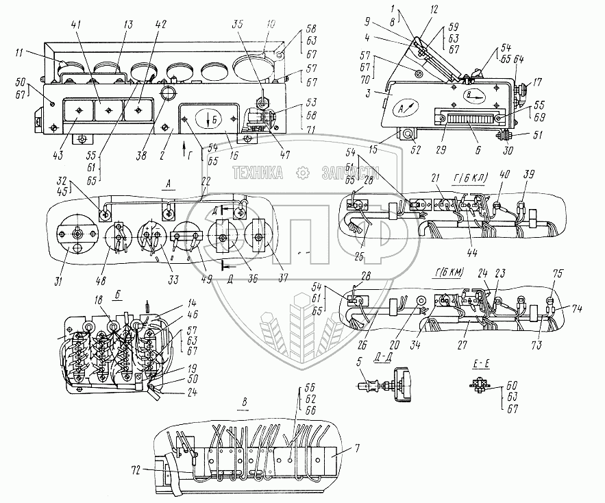 Каталог запасных частей к технике: ЮМЗ-6КЛ, (6КМ). Щиток приборов