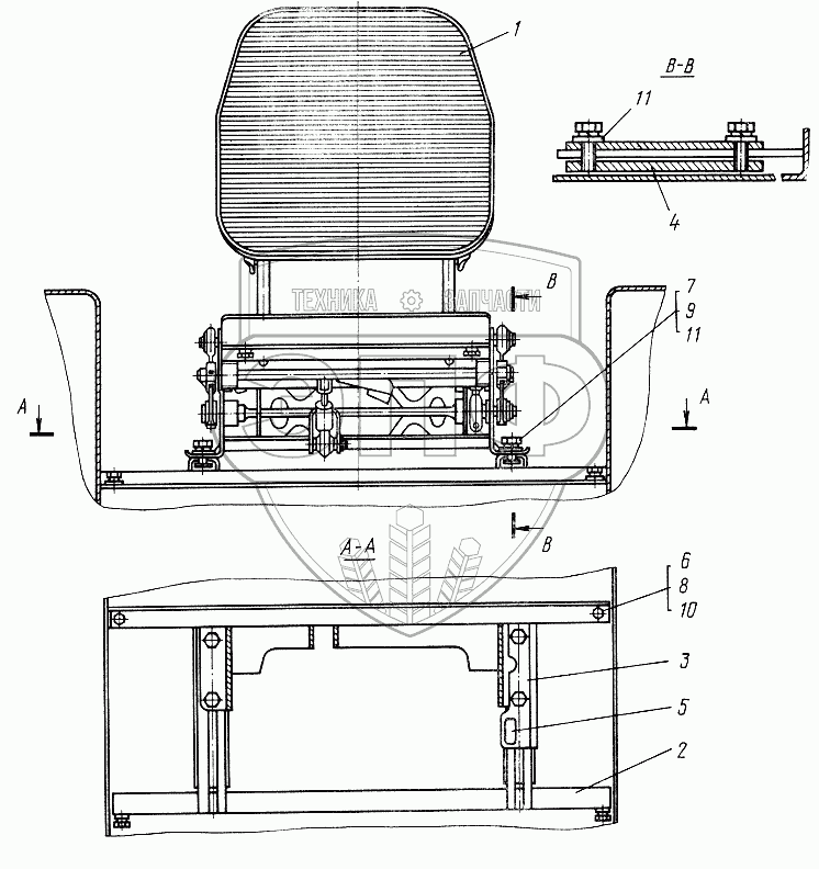 Каталог запасных частей к технике: ЮМЗ-6КЛ, (6КМ). Установка сиденья водителя
