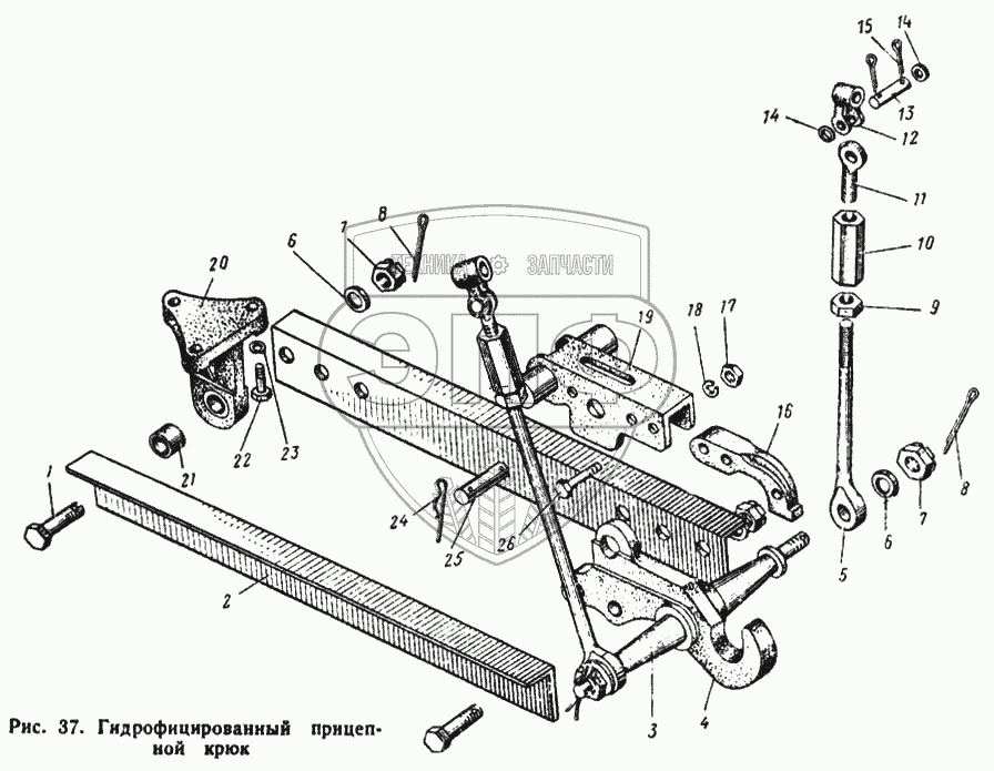 Каталог запасных частей к технике: ЮМЗ-6Л. Гидрофицированный прицепной крюк