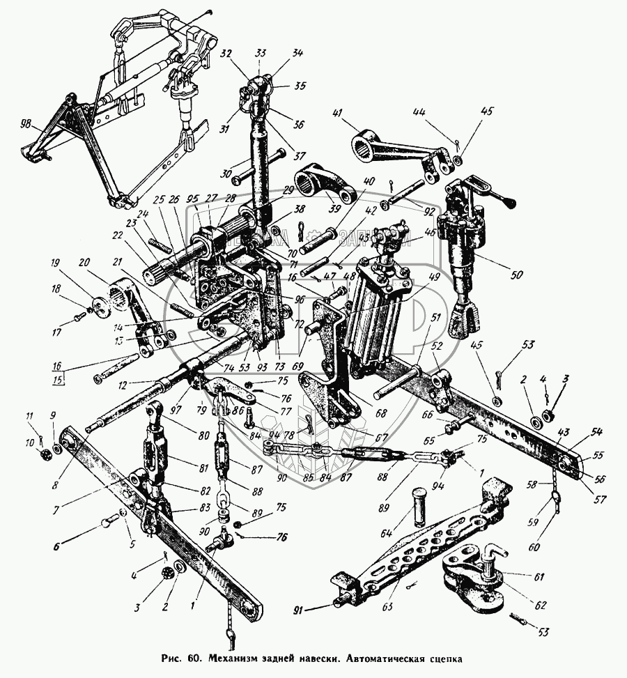 Каталог запасных частей к технике: ЮМЗ-6Л. Механизм задней навески. Автоматическая сцепка