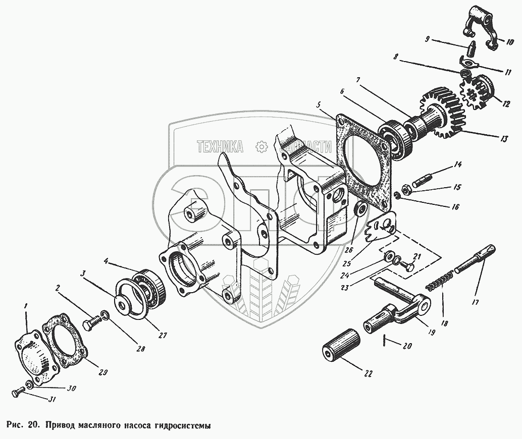 Каталог запасных частей к технике: ЮМЗ-6Л. Привод масляного насоса в гидросистеме