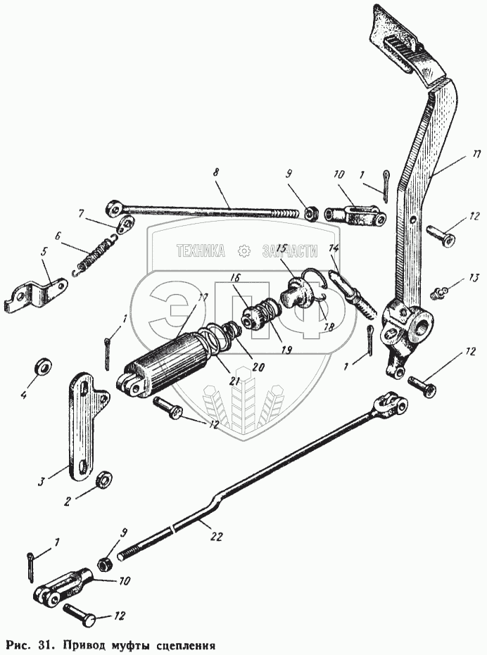 Каталог запасных частей к технике: ЮМЗ-6Л. Привод муфты сцепления