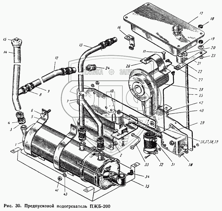 Каталог запасных частей к технике: ЮМЗ-6Л. Пусковой подогреватель ПЖБ-200