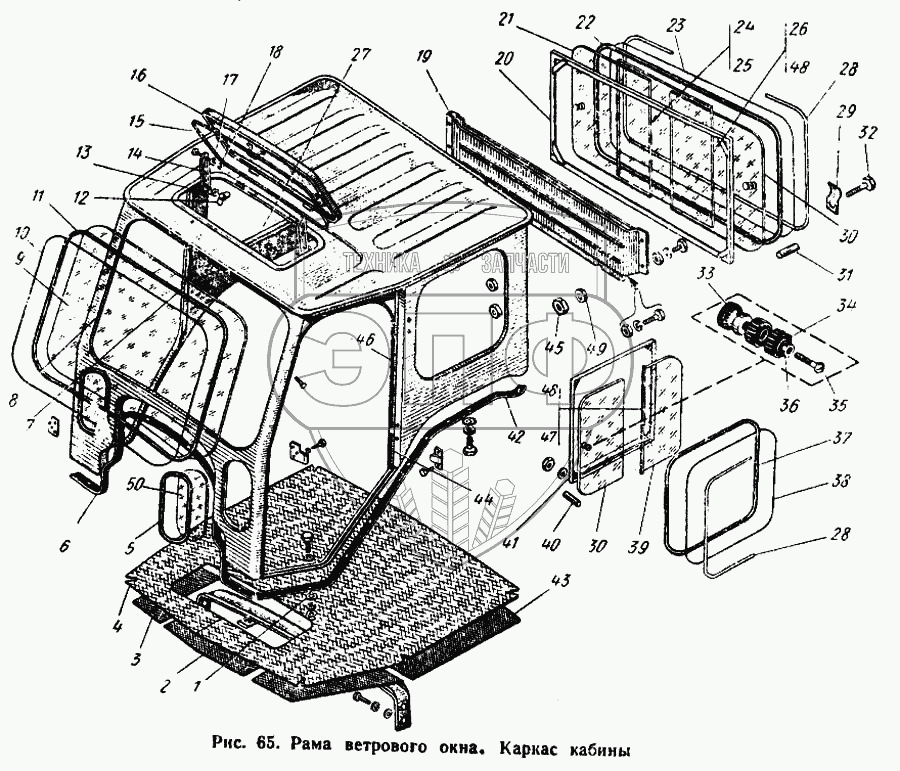 Каталог запасных частей к технике: ЮМЗ-6Л. Рама ветрового окна. Каркас кабины