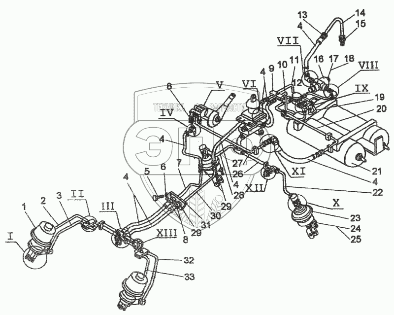 Каталог запасных частей к технике: Амкодор-327 (ТО-18Д). Пневмосистема
