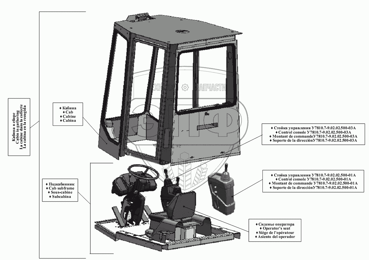 Каталог запасных частей к технике: Амкодор-332B, 332B4. Общий вид кабин