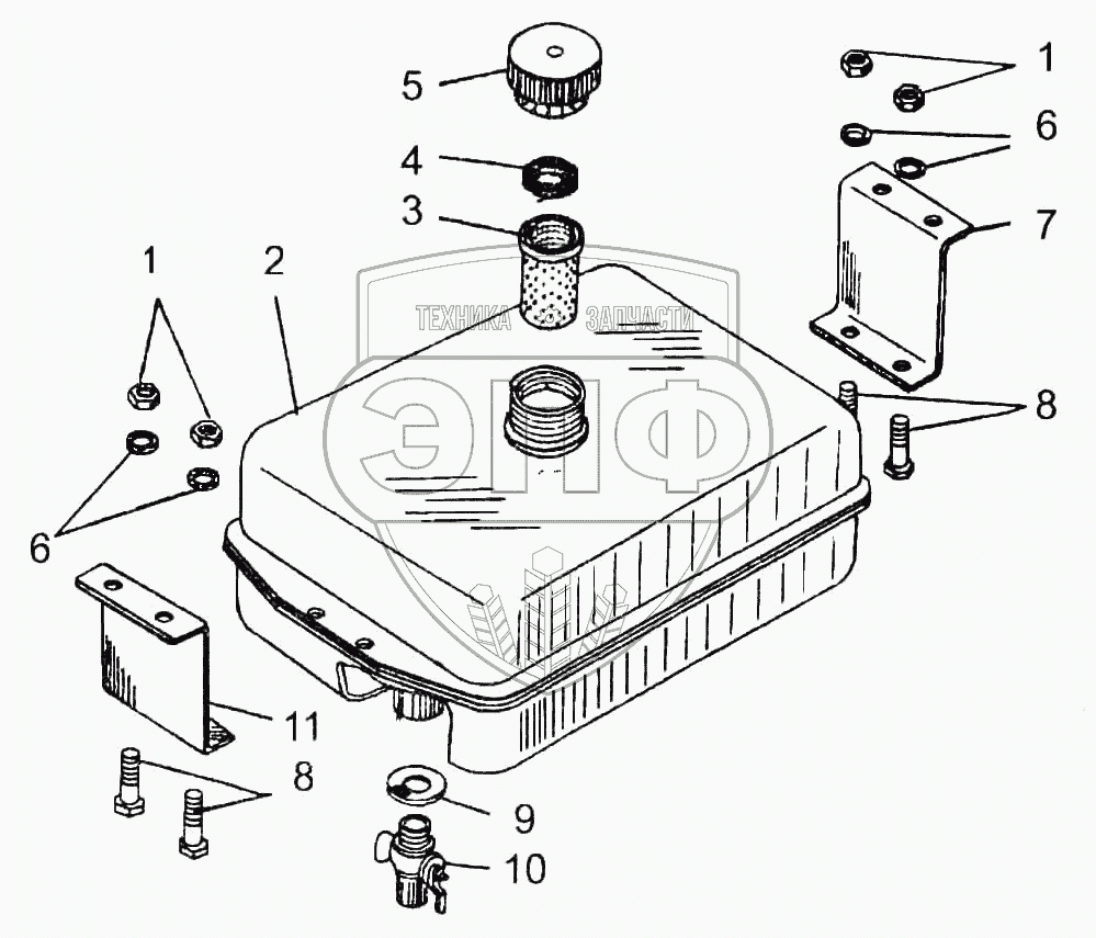 Каталог запасных частей к технике: Амкодор-342 (ТО-28). Бак топливный
