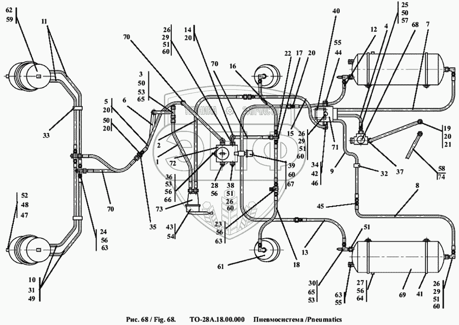 Каталог запасных частей к технике: Амкодор-342А (ТО-28А). Пневмосистема