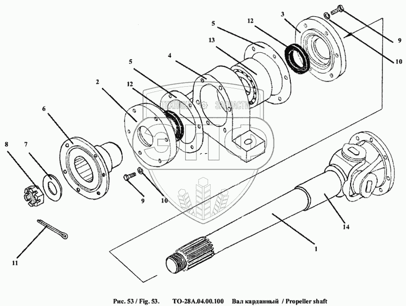 Каталог запасных частей к технике: Амкодор-342А (ТО-28А). Вал карданный