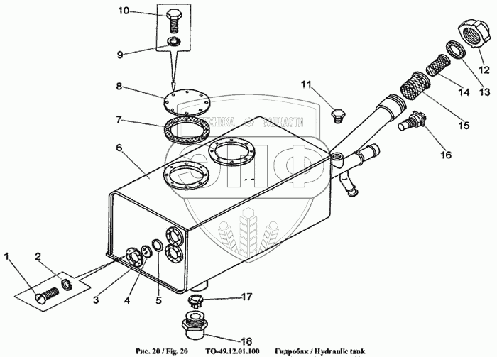 Каталог запасных частей к технике: Амкодор-702В (ТО-49-40). Гидробак