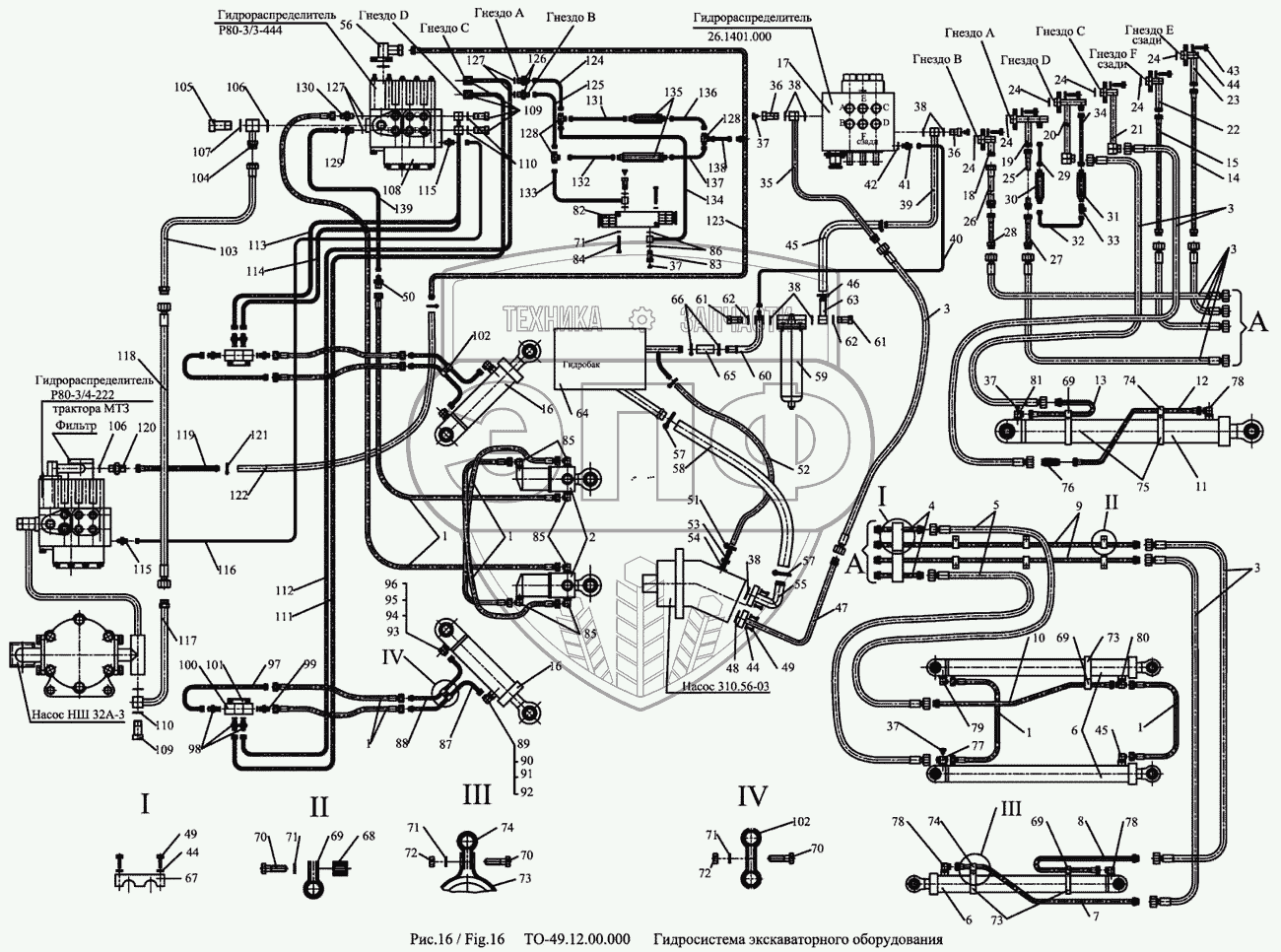Каталог запасных частей к технике: Амкодор-702В (ТО-49-40). Гидросистема