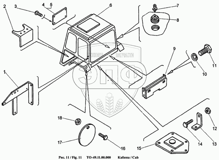Каталог запасных частей к технике: Амкодор-702В (ТО-49-40). Кабина