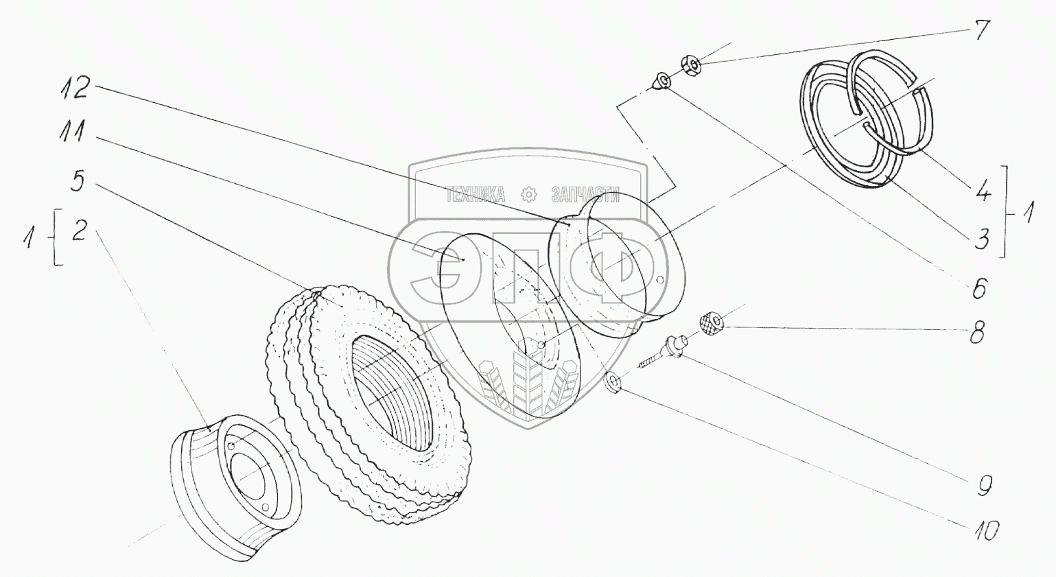 Каталог запасных частей к технике: Амкодор-Е16. Колесо 16х6-8