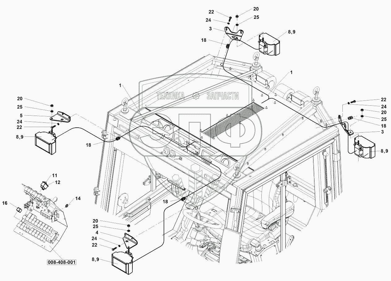 Каталог запасных частей к технике: Ammann AV 70X. Auxiliary headlamps - cab